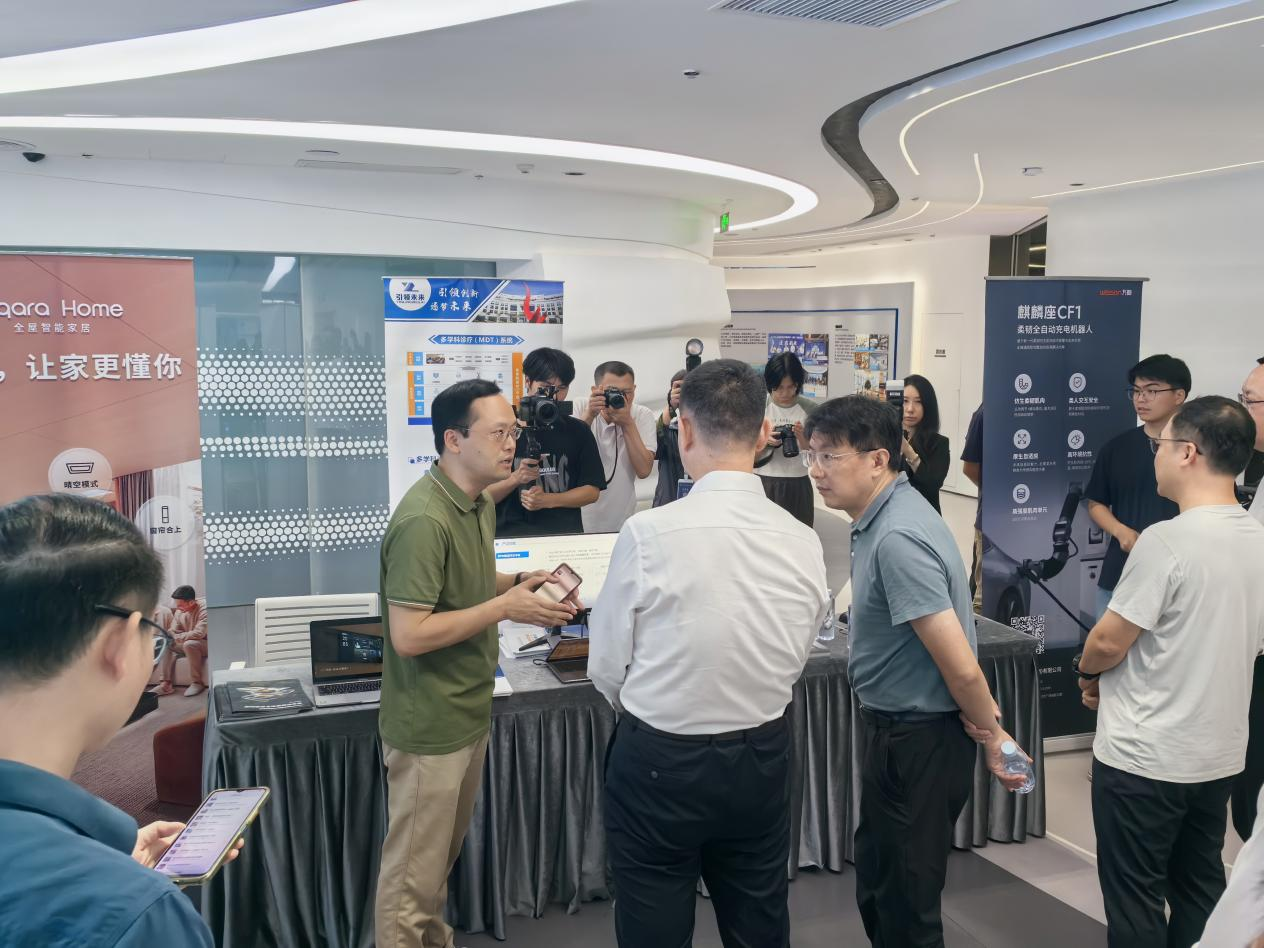 活动在充满科技氛围的现场参观中拉开帷幕,20余件涵盖智能芯片、终端设备及行业解决方案等多个领域的创新产品集中亮相,生动展现了深圳在人工智能领域的前沿成果与硬核实力。通过企业讲解员的专业、细致介绍,与会嘉宾们直观感受到了人工智能领域的技术创新与应用实践。