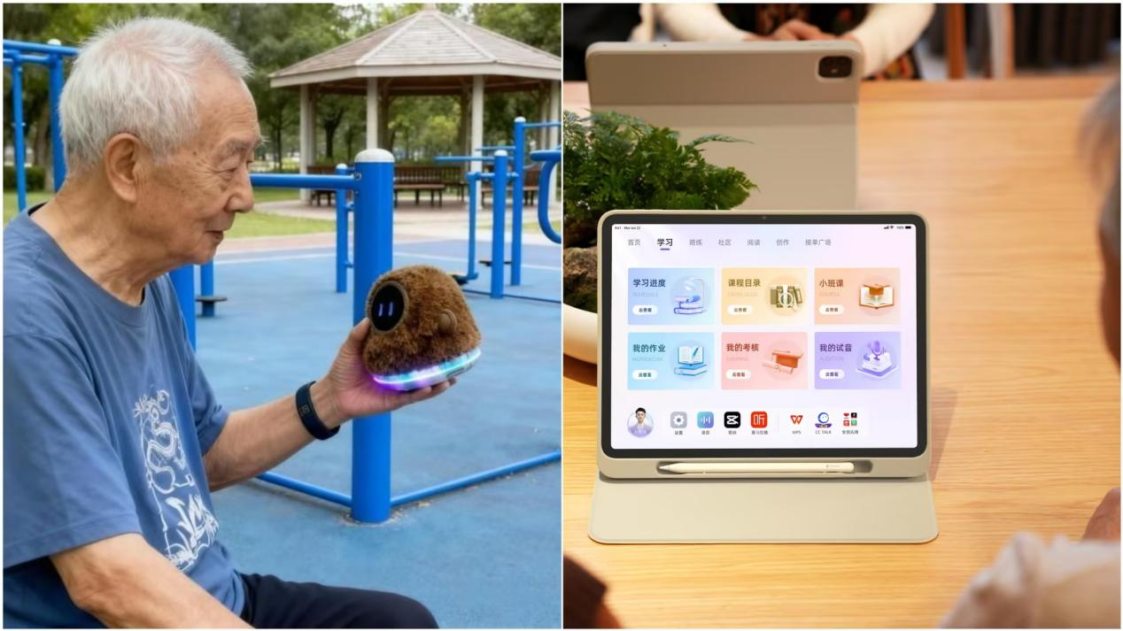 在硬件层面,企业推出“小智AI智慧养老终端”与“梨花AI声学学习机”两大智能设备。前者通过语音情感分析引擎,从语速、语调、停顿频率、关键词密度等维度,对老人的情绪状态进行初步评估,识别出潜在的抑郁、焦虑、孤独等心理风险,及时向家属或照护人员发出预警,并以“口袋伴侣”“挂脖穿戴”“桌面机器人”等轻便设备形态,通过语音交互、体感游戏、记忆训练等功能,精准匹配老年人社交、娱乐与认知维护需求,相关试点项目已在多家养老机构落地;后者则集成企业AI教育软件生态,成为银龄人群学习路径中的硬件载体。
